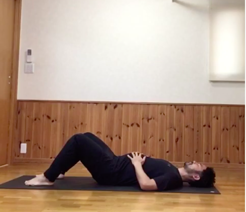 お腹を膨らむのを確認しながら息を吸って吐く時は脱力。